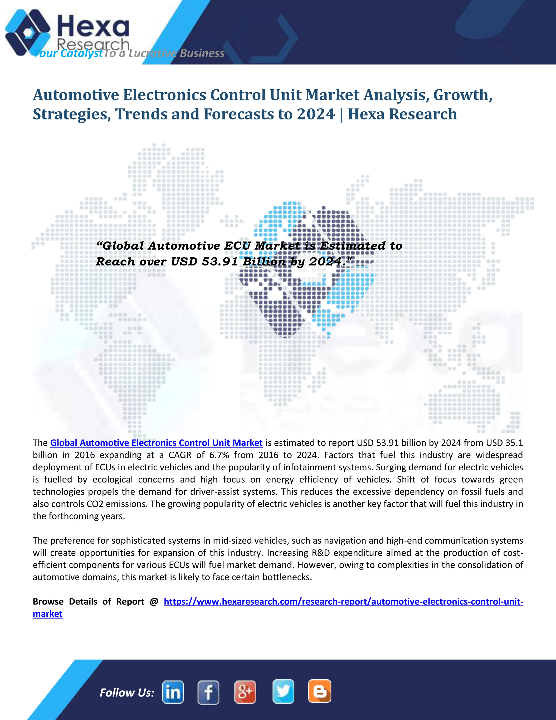 Global Automotive Electronic Control Unit Market To Witness Growth Through 2021 Owing To Increased Demand For Connected Vehicles Technavio Business Wire Gps Vehicle Tracking Android App