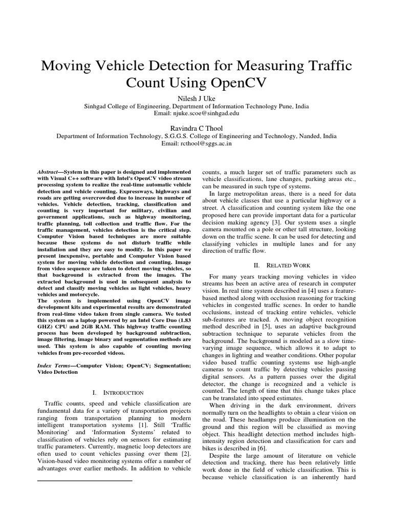 Moving Vehicle Detection For Measuring Traffic Count Using Opencv Etp Computer Vision Traffic Minecraft Mrcrayfish Vehicle Mod Gas Pump