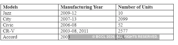 Honda Recalls 5088 Vehicles To Fix Takata Airbags The Economic Times Vehicles For Sale