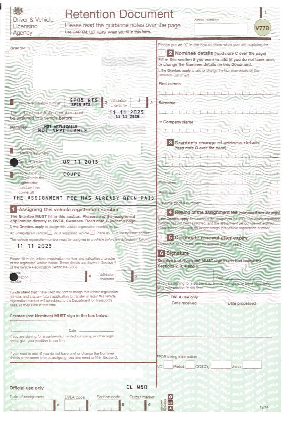Sp05 Rts Number Plate Vehicle Load Clause Insurance